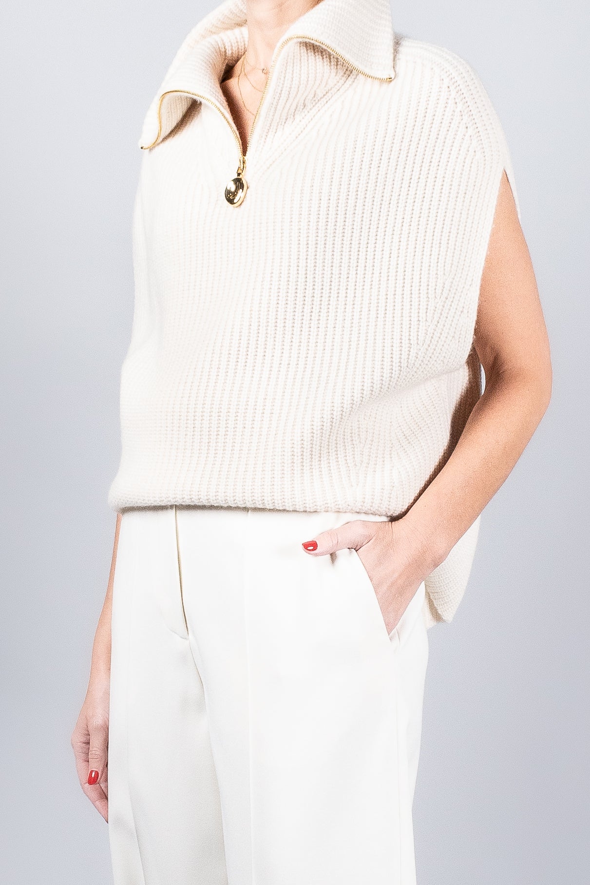 - Turtleneck with 3/4 gold zipper detail