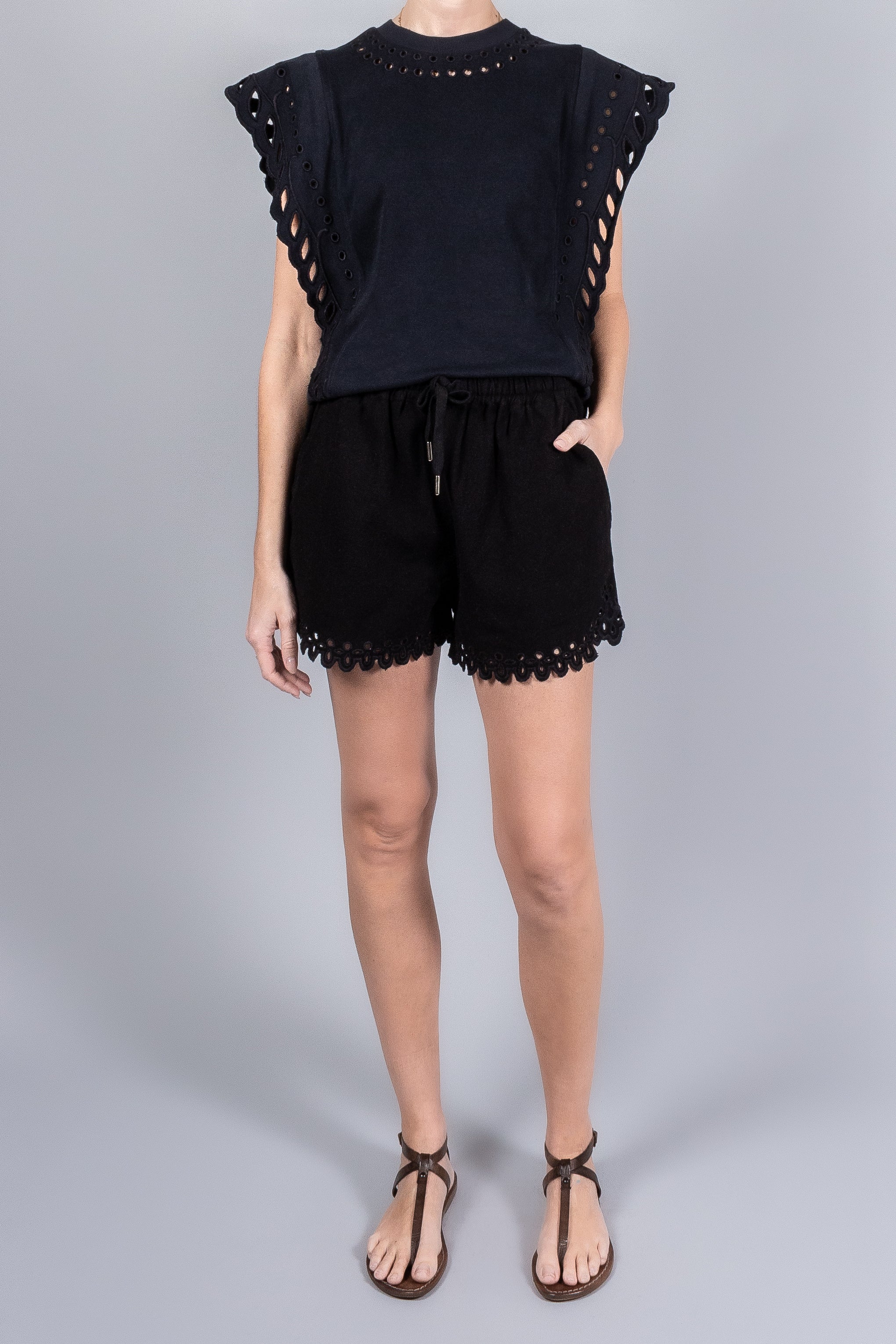 • Eyelet edge scalloped hem
